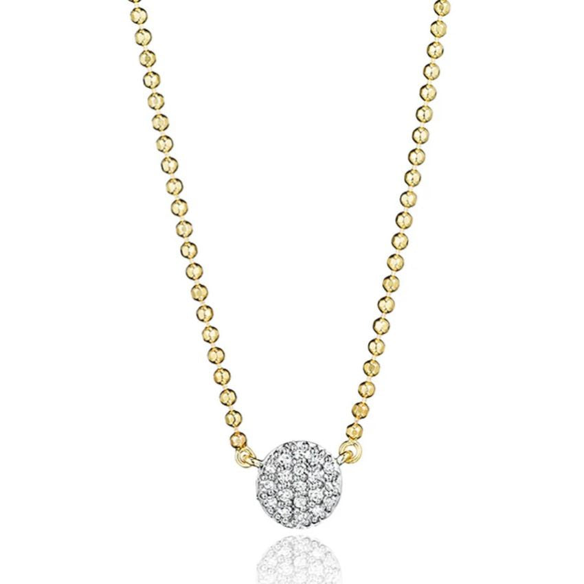 14K Yellow and White Gold with 19 Diamonds=0.10 CTTW, Pave Set, Disc Size=6MM, Chain Length=16-18" Adjustable