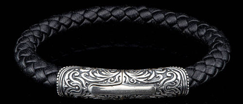 Sterling Silver Magnetic Clasp Double Closure on Custom Black Leather, Size Large