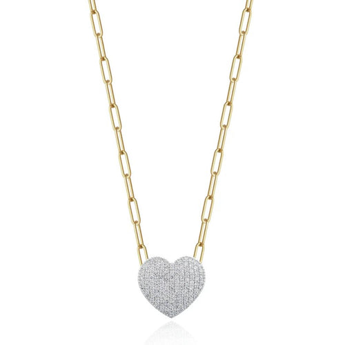 14K Yellow and White Gold with 55 Diamonds=0.27 CTTW, Pave Set, paper Clip Style Chain=18", Pendant Size=10MM x 10.97MM