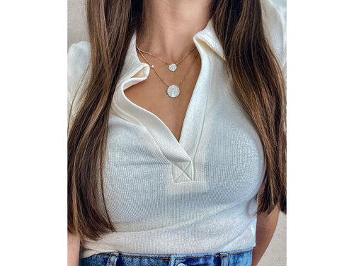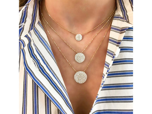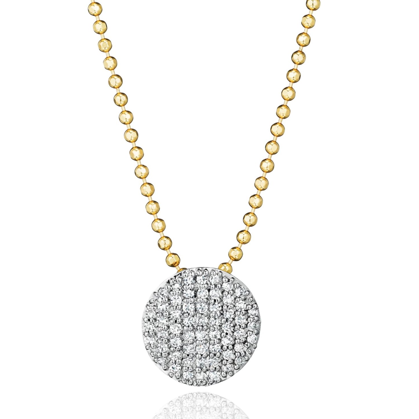 14K Yellow and White Gold with 56 Diamonds=0.27 CTTW, Pave Set, Disc Size=10MM, Chain Length=16-18" Adjustable
