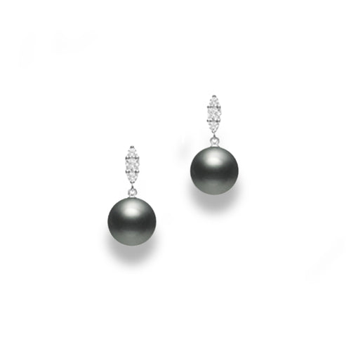 Morning Dew Black South Sea Pearl and Diamond Drop Earrings