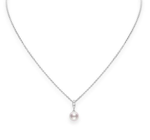 Morning Dew Collection Akoya Pearl and Diamond Pendant