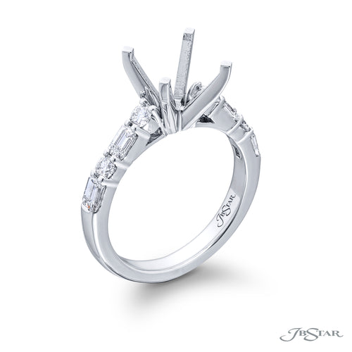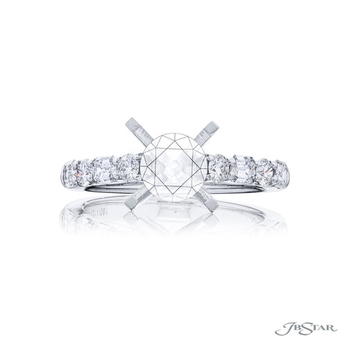 Platinum with Eight Diamonds, Emerald and Round Cut=0.90 CTTW, G Color, VS Clarity