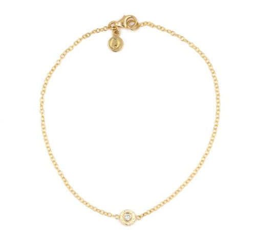 18K Yellow Gold with Diamond=0.03 CTTW, F Color, VS Clarity, Bezel Set, Adjustable 6.5-7"