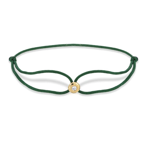 18K Yellow Gold with One Diamond=0.03 CT, G Color, VS Clarity, Bezel Set, Nylon Bracelet, Adjustable Sliding String Closure, Fits Most