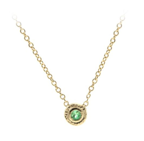18K Yellow Gold with One Emerald, AA Quality, Bezel Set, Hammered Finish, Length=16"