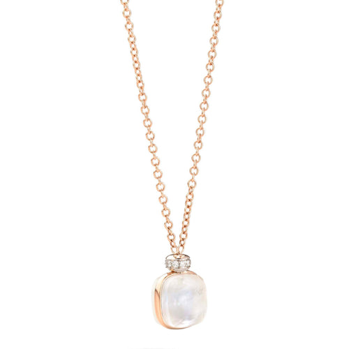 18K Rose and White Gold Necklace with Pendant with One White Topaz with White Mother-of-Pearl=11.3 CT and 10 White Diamonds=0.10 CTTW on 18K White Rhodium-Plated White Gold