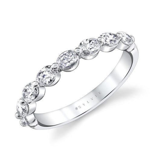 14K White Gold with Eight Oval Cut Diamonds=0.80 CTTW, Single-Prong Set, Size 6.5