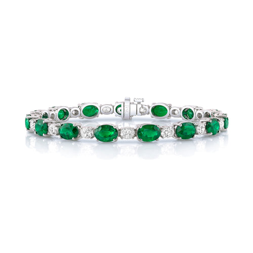 Platinum with 15 Oval Cut Emeralds=10.36 CTS and 15 Oval Cut Diamonds=2.17 CTTW, Length=7.5"
