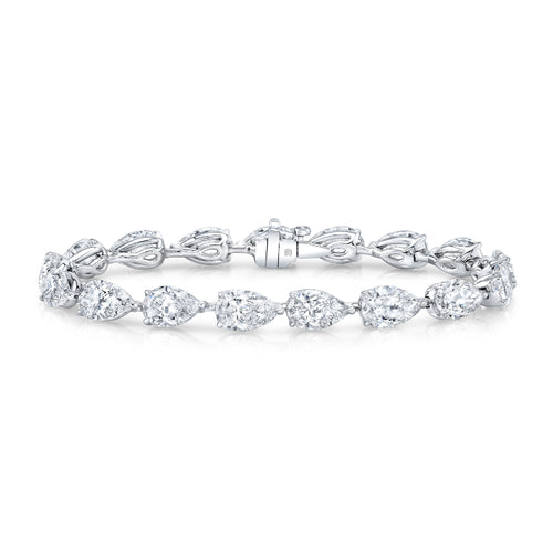18K White Gold Pear Cut Diamond Bracelet with 20 Diamonds=8.01 CTTW, F-G Color, VS Clarity, Length=6.5"