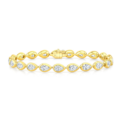 18K Yellow Gold and 20 GIA Certified Pear Shape Diamonds=6.05 CTTW, D-G Color and VS2-SI1 Clarity, Bezel Set, Length=7”
