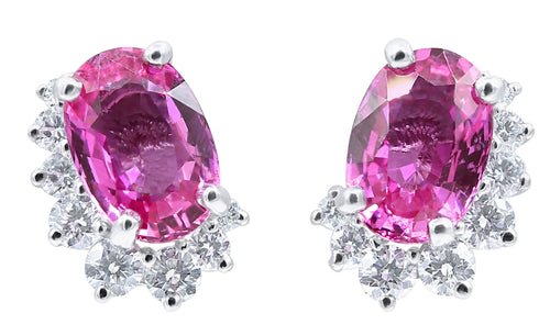 Platinum with Two Certified Madagascar Origin Oval Cut Pink Sapphires and16 Round Diamonds=0.74 CTTW, Clip On Mechanism, 1/2" x 3/8"