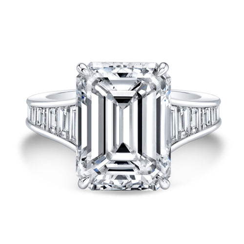 Platinum Mounting with Channel Set Trapezoid Cut Diamonds=1.31 CTTW, G-H Color, VVS Clarity, for 4 CT Emerald Cut Center Diamond, Mounting Only