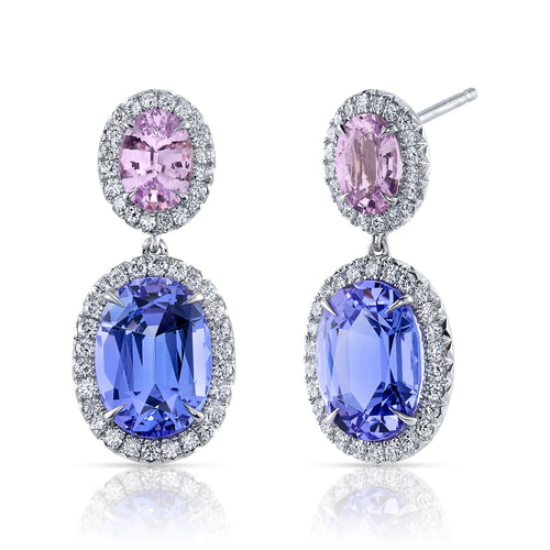 Platinum Tanzanite and Pink Sapphire with Diamond Earrings
