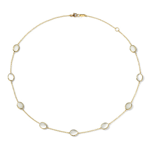 18K Yellow Gold and Nine Mother-of-Pearl Bezel Set Stations, Length is Adjustable 16-18"