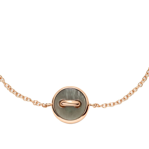 18K Rose Gold with Diamonds=0.05 CTTW, Pave Set, and White MOP on One Side and Grey MOP on the Other, Chain Length=42 CM (16.5 Inches)
