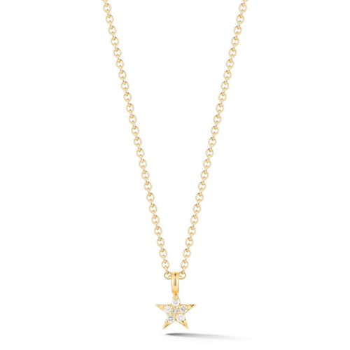 14K Yellow Gold with Six Diamonds=0.03 CTTW, Star Measures 5 x 5 MM, Chain Length=16"
