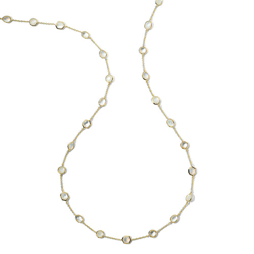 18K Yellow Gold with White Moonstone, Rock Crystal, Mother-of-Pearl, Bezel Set, 37"