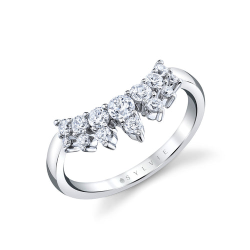 14K White Gold with 14 Round Diamonds=0.50 CTTW, Set with Unique Curve, Size 6.5