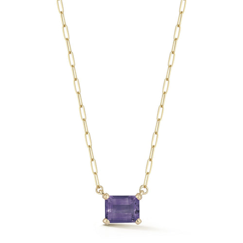 14K Yellow Gold with One Step Cut iolite=1.72 CTS, 9 x 7 MM, set East-West on 1.5MM Paperclip Chain 16"