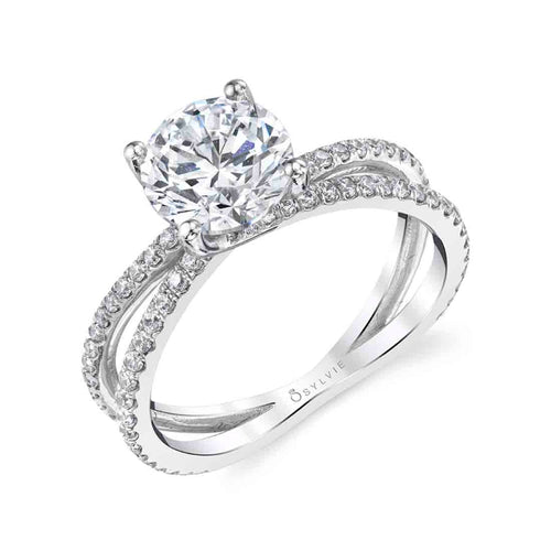 14K White Gold with Diamonds=0.47 CTTW, Split Shank for a 1.50 Brilliant Round Center