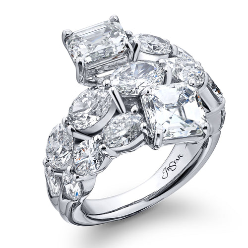 Platinum with Two GIA Certified Diamonds: Square Emerald Cut=1.50 CT, I Color, VS2 Clarity, GIA #2477862344 and 1.52 CT, I Color, VVS-2 Clarity, GIA #1473860729, with Four Pear Shape and Nine Oval Cut Diamonds=4.40 CTS, All Diamonds are Fine Belgium Cut, Diamond Total Weight=7.42 CTTW, Size 6.75