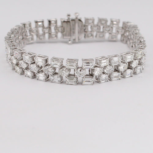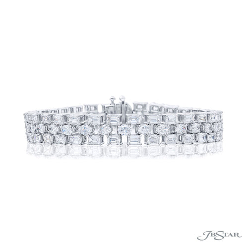 Platinum with 62 Emerald Cut Diamonds=12.90 CTS and 31 Oval Cut Diamonds=4.80 CTS, G Color, VS Clarity, Diamond Total Weight=17.70 CTS, Shared Prong Set, Length=7"