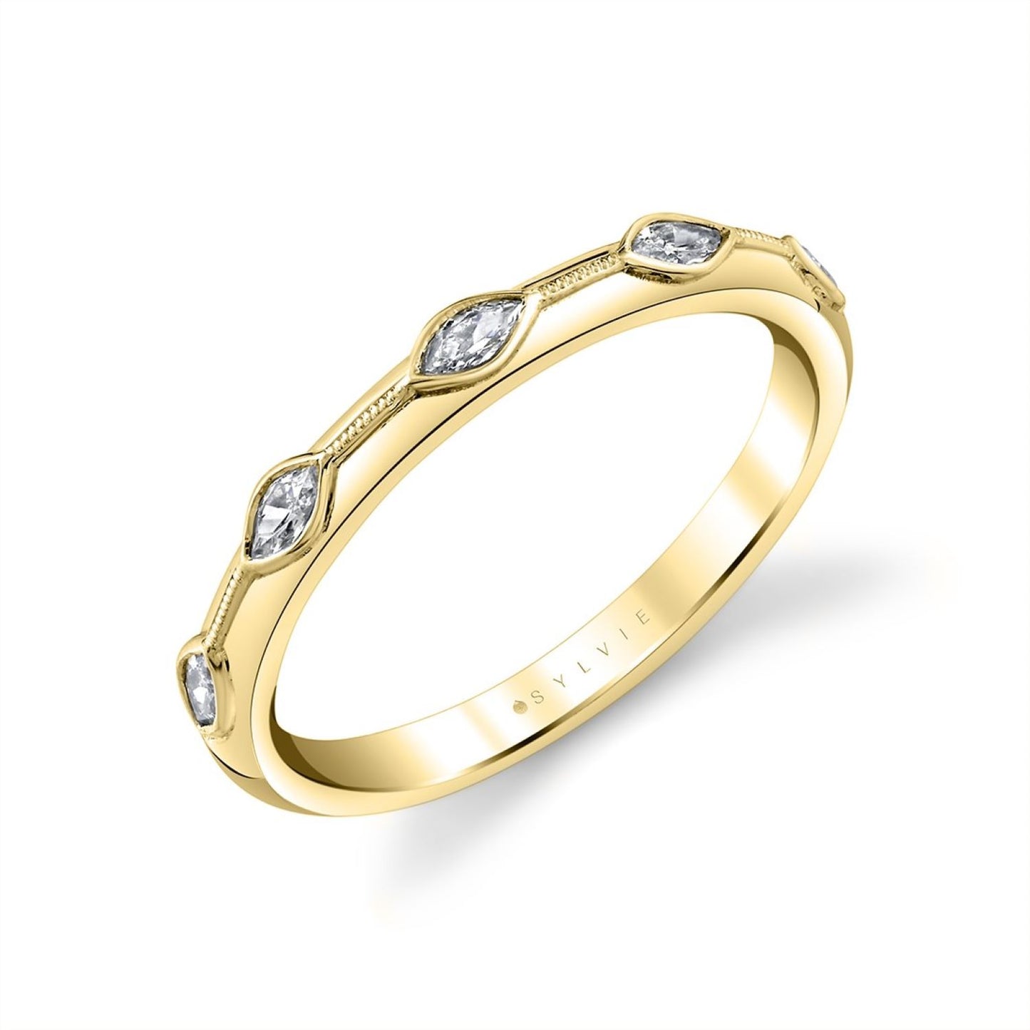 14K Yellow Gold with Five Marquise Cut Diamonds=0.17 CTTW, Bezel Set Connected by very fine lines of milgrain to create a vine-like design, Size 6.5