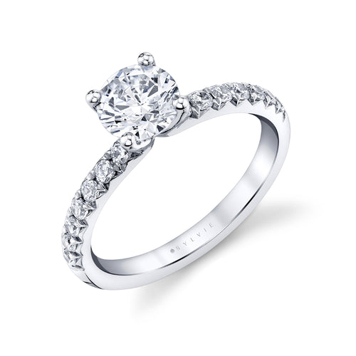 14K White Gold with 22 Diamonds=0.52 CTTW for a 1.50 CT Brilliant Round Center