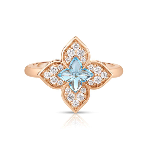 Venetian Princess Diamond & Blue Topaz Flower Ring